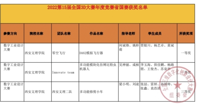我校机械与材料工程学院获全国三维数字化创新设计大赛一等奖