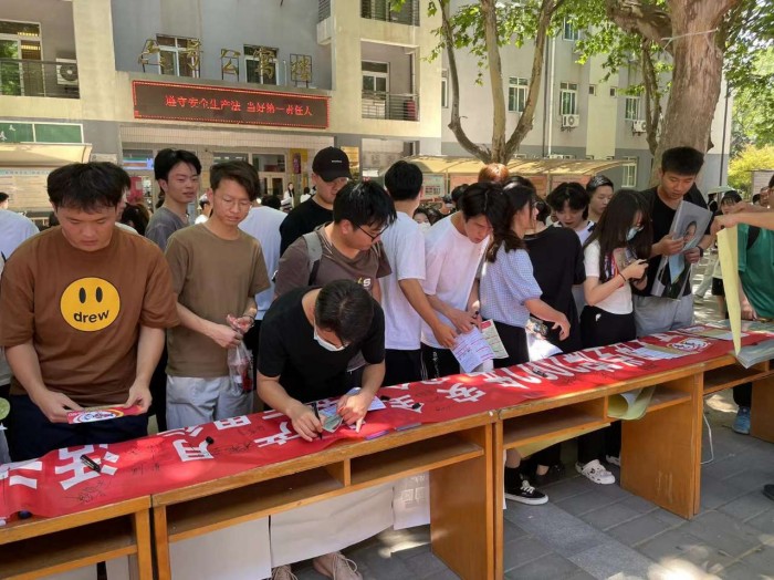 活动现场,宣传人员通过悬挂横幅、发放安全教育宣传资料、展出宣传展板、咨询答疑等方式,向过往的师生员工宣传用电、交通、治安、消防、食品、燃气等安全知识,应急救援及防范电信网络诈骗、远离毒品、防范邪教渗透、反恐防暴等治安常识教育,提高师生法治意识、安全意识、责任意识和应急救助技能。内容丰富的宣传资料吸引了大量师生员工驻足咨询,宣传人员为师生员工热情地答疑解惑,不断有同学向现场的公安、消防、交警同志进行安全咨询,现场气氛热烈,活动圆满成功。