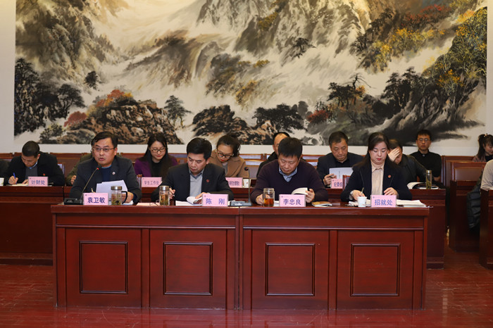 陈刚结合学校实际,对招生就业工作提出了具体要求,一是要全校动员,加强对招生就业工作的投入力度;二是要改革创新,建立高质量发展的工作体系;三是要协同配合,构建招生、培养、就业、评价联动机制;四是重视媒体互融,开启招生就业工作宣传新模式;五是改革创新,强化生源基地和就业基地建设;六是注重人才培养工作的评价、反馈与改进。
