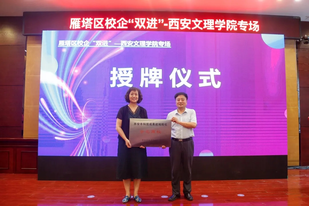 为深入实施创新驱动发展战略,落实全市十项重点工作之“人才队伍建设及科技创新工作”,聚力雁塔创新之城建设,充分发挥雁塔科教资源优势,加快推动驻地高校科技成果就地转化,在陕西省科技厅、陕西省教育厅、西安市科技局指导下,7月16日下午,雁塔区人民政府和我校共同举办了“雁塔区校企“双进”-西安九游老哥J9俱乐部官网学院专场”活动。我校校长陈刚、校党委副书记、副校长李忠良、西安市雁塔区人民政府区长崔诗越、副区长吕东国、陕西省科学技术厅成果转化处处长王云岗、西安市科学技术局成果处处长解中、陕西省教育厅高校技术转移中心主任田鹏等领导出席活动。雁塔区政府相关部门,我校行政部门及二级学院院长,技术经理人等100余人参加了本次活动。我校副校长王晓萍主持活动。