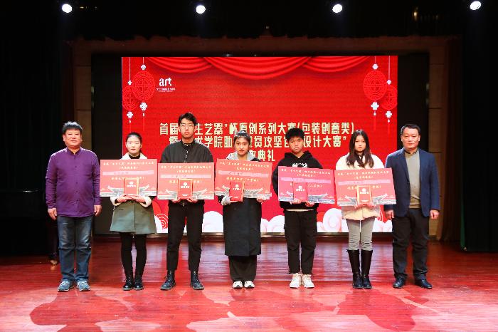 12月31日,艺术学院与产业集团共同主办的首届“书生艺器”杯原创设计大赛(包装创意类)暨“艺术学院助力脱贫攻坚包装设计大赛”颁奖典礼。校党委委员、工会主席范宏,校党委委员、副校长邬连东出席典礼,校组织部组织员刘锐军、党委统战部部长丁迪安、学生处处长郑旻、产业集团总经理肖胜利,艺术学院院长田军、党总支书记李晓煜,组织员张秦川、副院长杨艺媛、党总支副书记王一与获奖师生代表了参加颁奖典礼。颁奖典礼由艺术学院干部巩珊珊主持。