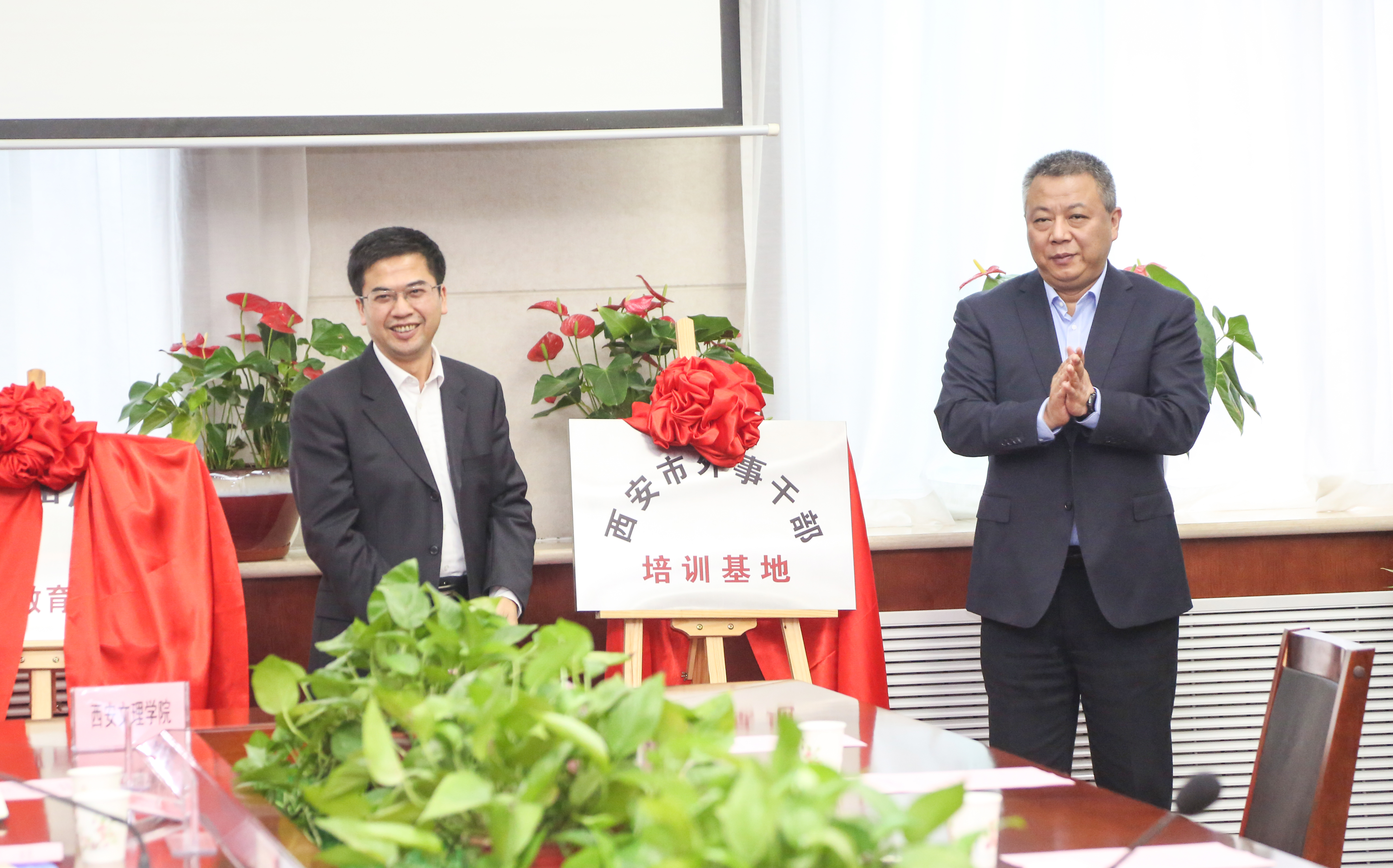 随后,王晓萍与杨桢一同签订了战略合作协议,陈刚与强盛为“西安市外事干部培训基地”、“西安市出国人员廉政教育基地”、“西安九游老哥J9俱乐部官网学院实习实践基地”揭牌。