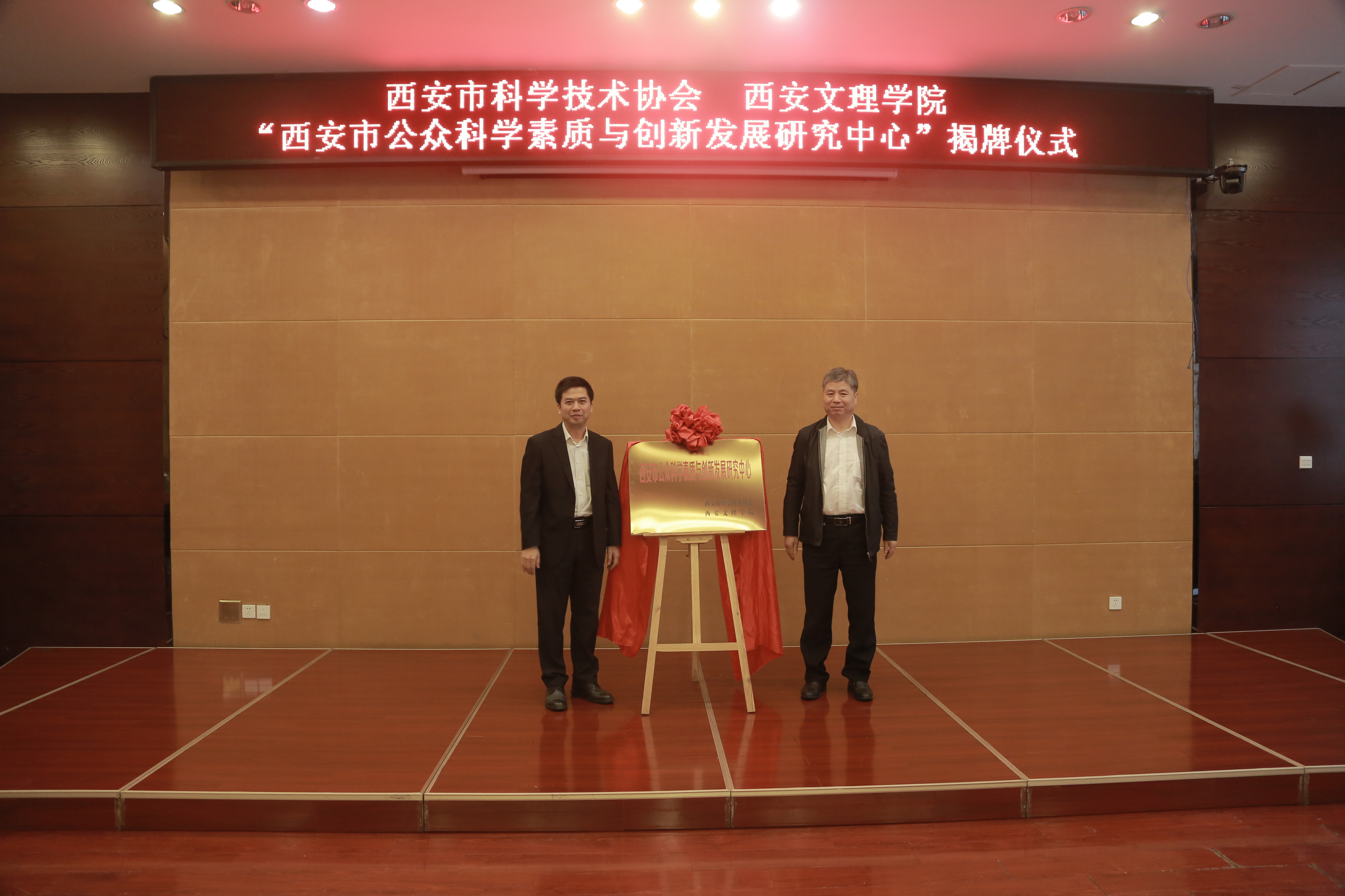 9月28日上午,“西安市公众科学素质与创新发展研究中心” 在我校挂牌成立。西安市科协党组书记、常务副主席耿占军,党组副书记、副主席刘发奎、王晓红及相关部门负责人、我校校长陈刚、副校长韩权、校务委员曹鸿及相关部门负责人参加了揭牌仪式。仪式由韩权主持。