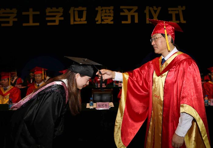 徐可为校长为获得学士学位的学生代表拨转流苏