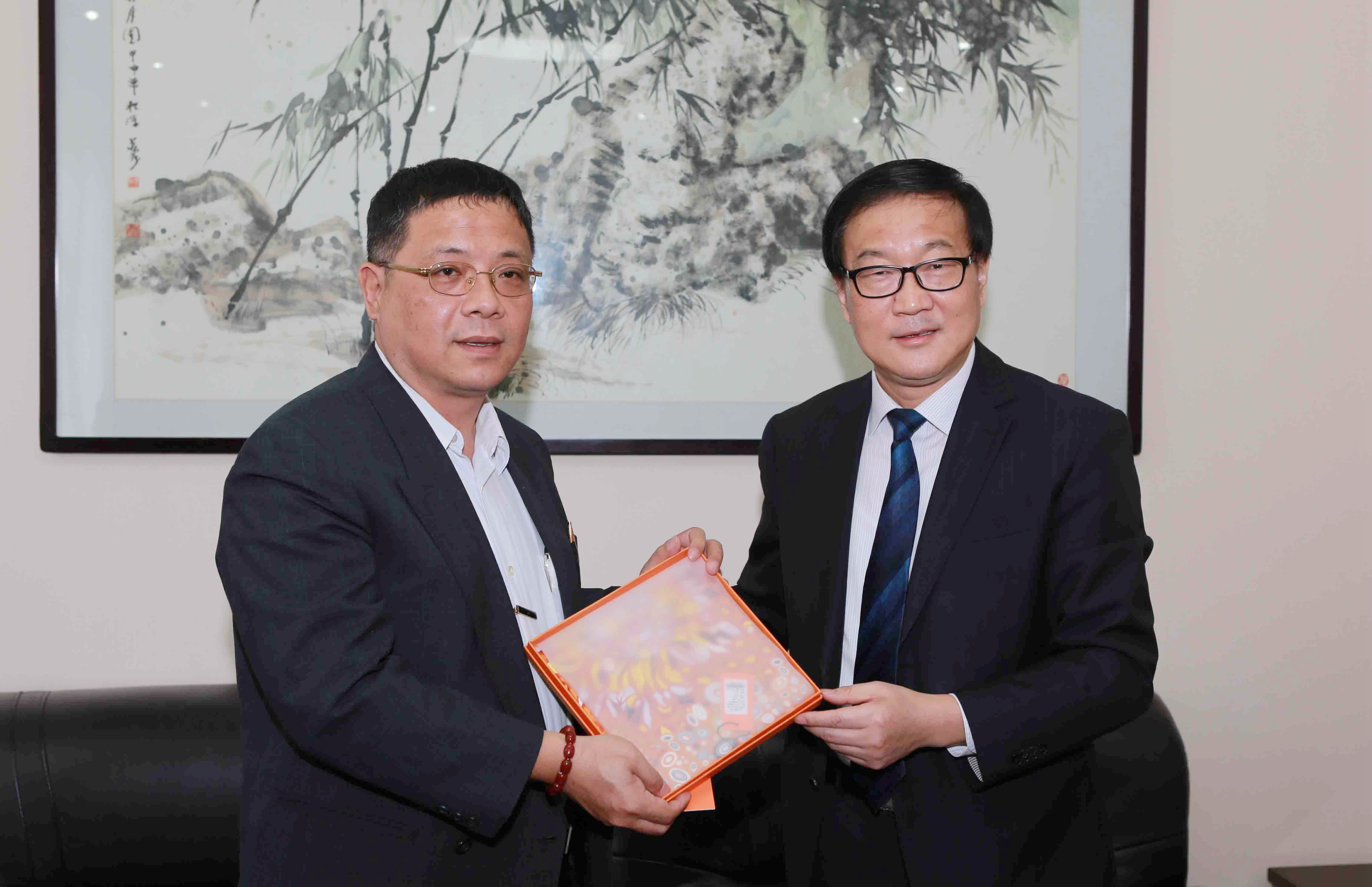 校长徐可为(右)向台湾岭东科技大学副校长杨永列赠送纪念品