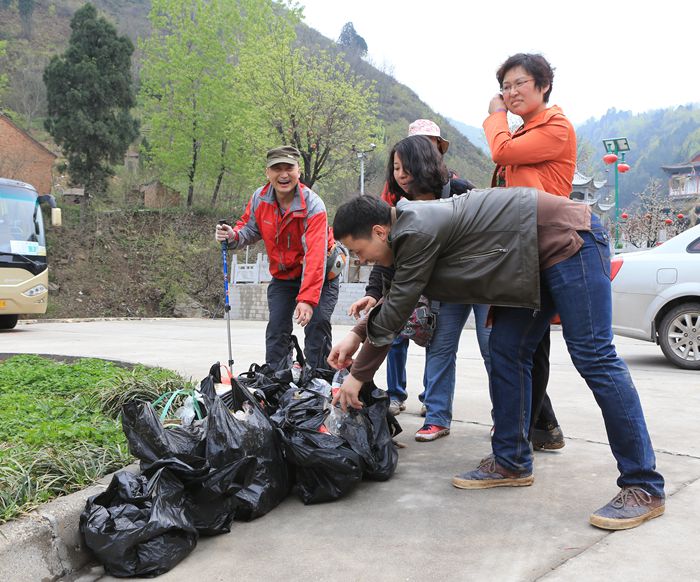 志愿者们在秦岭捡拾垃圾