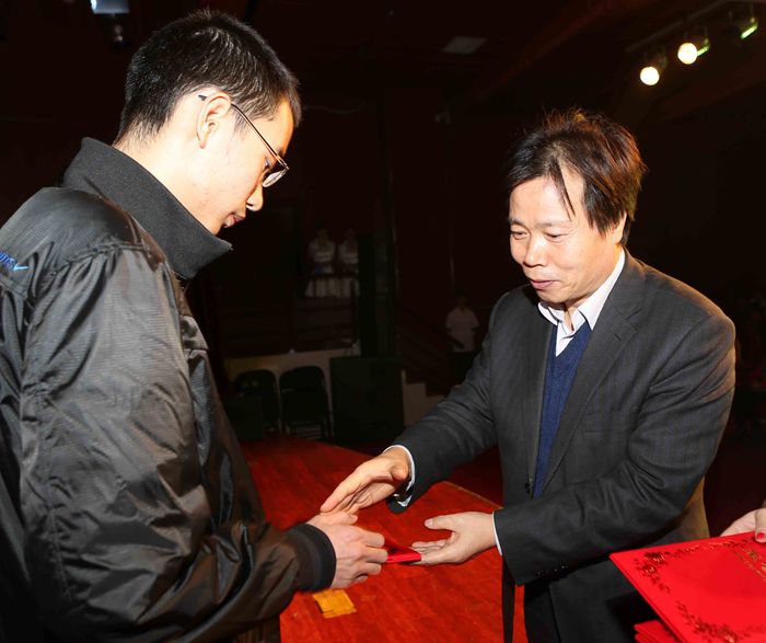 获奖的先进集体和优秀个人先后上台接受表彰。校领导为获奖者颁发了证书、奖牌,并与他们合影留言。