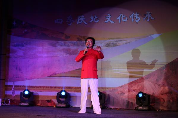 本次演唱会民间歌手为主,有著名民歌歌手的助阵,也有我校学生的精彩演出。整场演唱会以“春·夏·秋·冬”四季变化为线索,来表现陕北人的生命情感和文化特质。随着一曲《东方红》,演唱会正式开始,绚烂的灯光效果,演唱者帅气的外表,加上陕北汉子纯正的嗓音,会场内响起阵阵掌声。演唱会为了展现陕北民歌的多样性、独特性、传承性,通过精挑细选,选取了许多经典的曲目。年轻艺人贺艳、纪军、贺世强、柳强强等演唱的《老祖先留下个人爱人》、《吉祥腰鼓 》、《五月散花》、《三十里铺》、《走西口》,《一对对鸳鸯水上漂》,星光大道获奖选手孙刚演唱的《上道坡坡,下一道梁》、《泪蛋蛋》,文学院学生曹天顺的《黄河不干心不甘》,外语学院学生郝晓梅的《赶牲灵》等精心编排的节目,赢得到了观众热烈的掌声。由陕北著名民歌手文世龙演唱的英文版陕北民歌《山丹丹开花红艳艳》,令大家耳目一新。文世龙已将50多首陕北民歌改编成了英文版,他要让陕北民歌走向世界,让陕北民歌成为中华之瑰宝,民族之骄傲。在演唱会的尾声,中宣部授予的著名“陕北民歌大王”贺玉堂的出场将演唱会推向了高潮,72岁的贺老师唱了一辈子的民歌,脸上已是布满皱纹,但那瘦弱的身体却包含着强大的能量,声音高昂嘹亮。视民歌如生命的贺老师,他唱出了民歌里的历史,将博大精深的陕北民歌诠释得淋漓尽致,让在场师生更加直观地感受到陕北民歌的无尽魅力。