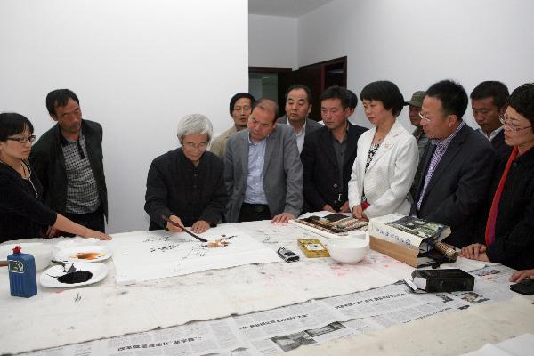 著名密体山水画家我校马继忠教授也在仪式上讲话,他说:“太白写生课,仅仅是教学的一个开始,我希望在太白县政府的关怀下,把长安精神艺术创作中心马继忠密体山水画创作基地建立起来,把歌颂太白山的山水长卷一直画下去”。仪式后,马继忠老师与学生们笔会交流。