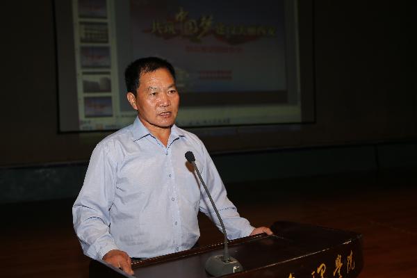 副校长耿占军在报告会上致辞,要求党员干部及广大师生以榜样的力量进行自我教育,端正价值追求、纯洁思想道德,为实现“中国梦”、实现我校又好又快发展贡献自己的力量。