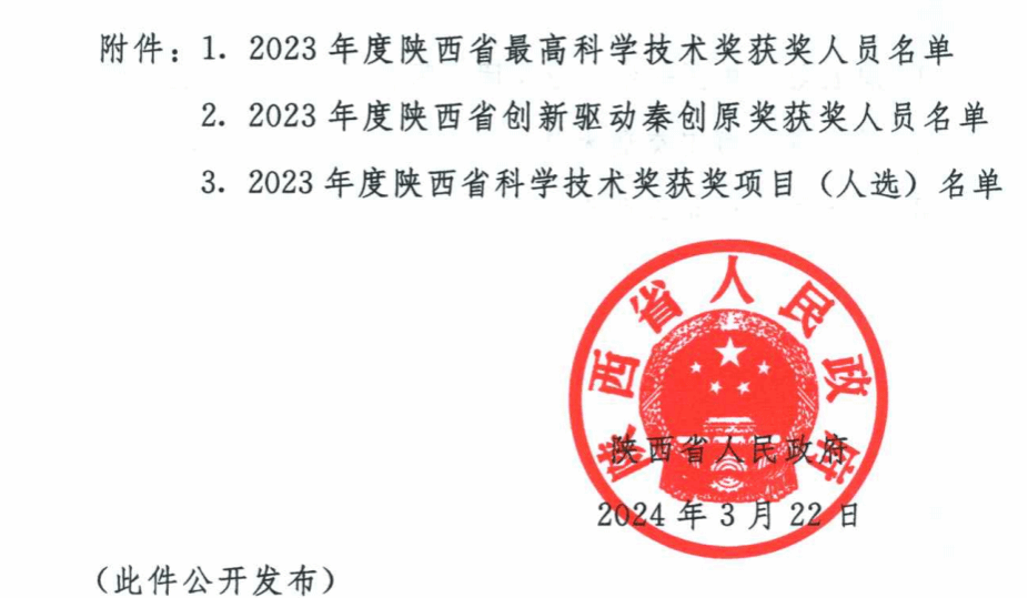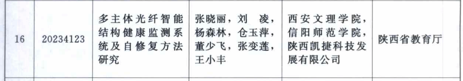 3月22日,陕西省科学技术厅发布了《陕西省人民政府关于2023年度陕西省科学技术奖励的决定》(陕政字[2024]34号),我校机械与材料工程学院张晓丽、刘凌、杨森林等组成的科研团队申报的《多主体光纤智能结构健康监测系统及自修复方法研究》荣获了陕西省科技进步三等奖。