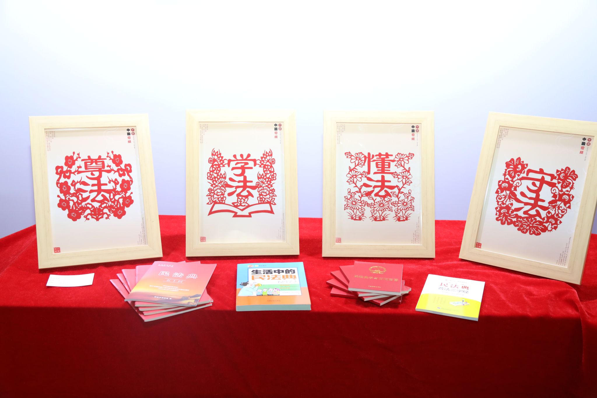 本次活动设置了青少年优秀法治文化作品展览、民法典进校园普法宣传集市和优秀法治文化节目展示等环节。在活动现场,来自西安市各学校的剪纸、水彩画、书法、雕刻等百余件优秀法治文化作品,汇聚成法治文化涓涓细流,吸引在校师生浸润其中,近距离接触法治精神的滋养。由西安市司法局、市法律援助中心、市公证处、司法鉴定机构以及高新区有关单位组成的普法宣传集市为学生普及法律知识、解答法律咨询,受到广大学生欢迎。