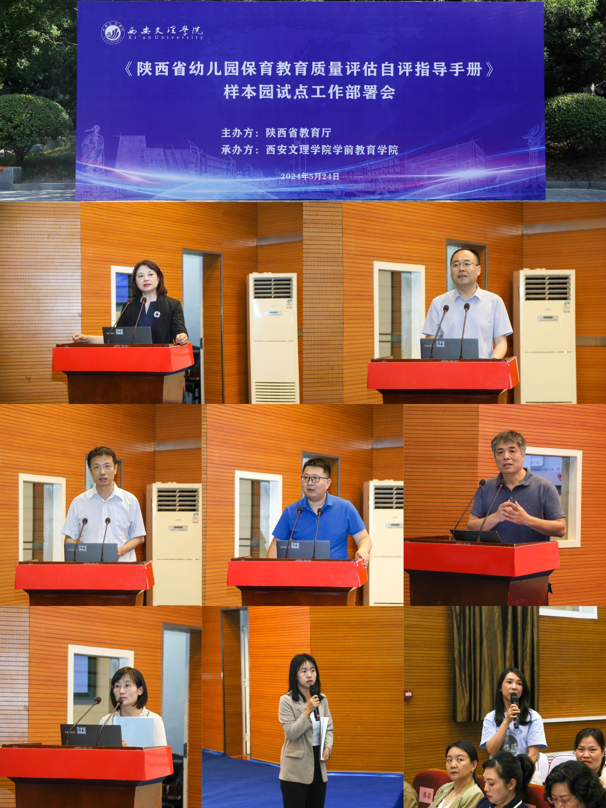 为深入贯彻落实《幼儿园保育教育质量评估指南》精神,推动《陕西省幼儿园保育教育质量评估自评指导手册》进一步完善,5月24日上午,学前教育学院在明德楼A区报告厅承办了《陕西省幼儿园保育教育质量评估自评指导手册》样本园试点工作部署会。陕西省教育厅基教一处副处长柳铭、西安九游老哥J9俱乐部官网学院校务委员徐东升、50名省级培训专家、50所样本园园长及骨干教师代表、技术平台代表、学前教育学院项目组全体成员等近300人参加了会议。会议由教务处处长、学前教育学院院长蔡军主持。