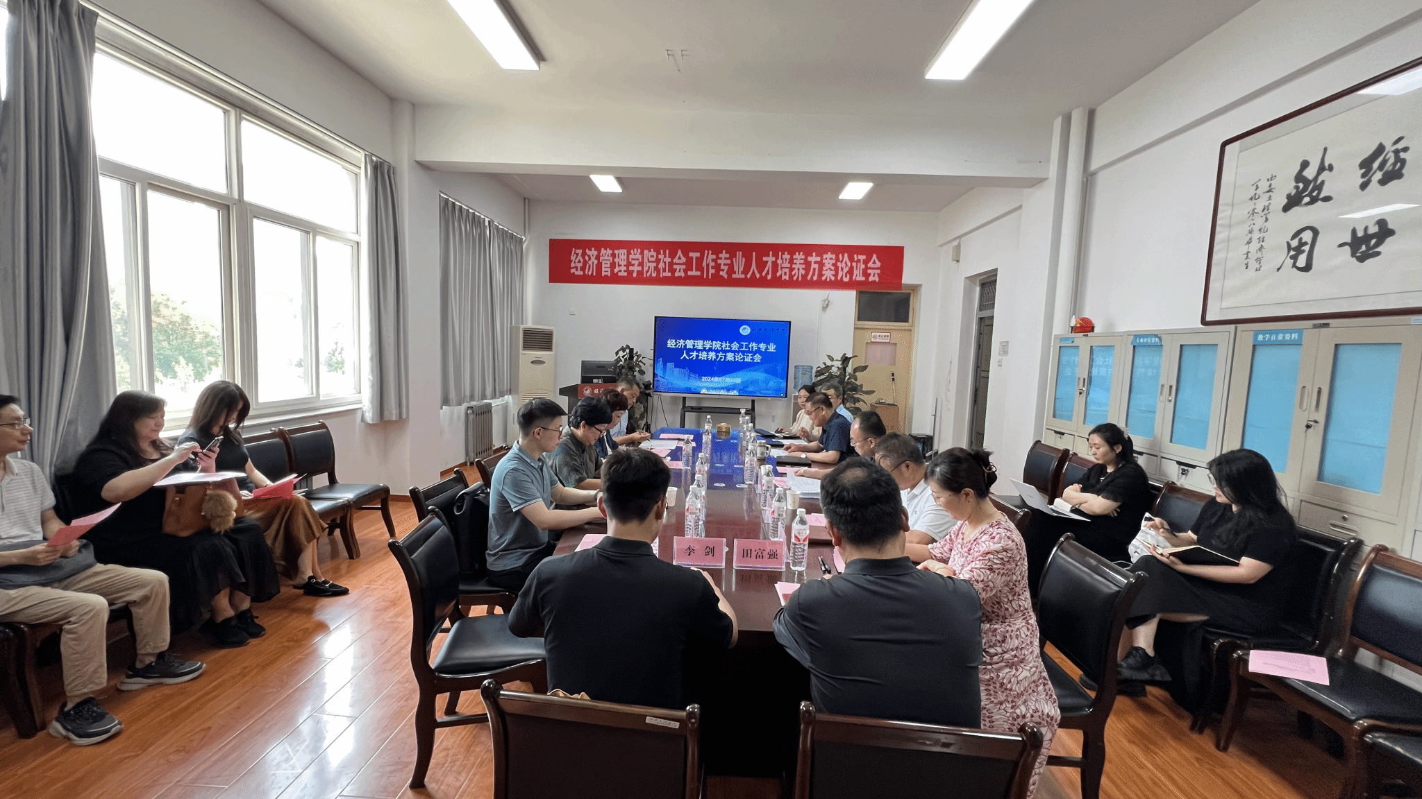 7月4日下午,经济管理学院召开社会工作专业人才培养方案论证会。特邀中国社会工作教育协会副秘书长、陕西省社会工作协会会长、西北大学慈善研究院副院长刘莹教授;长春理工大学社会工作国家一流专业负责人、硕士生导师杜实博士;西安市委社会工作部六处处长马蓉、干部李磊、李剑到会指导。教务处副处长付洪冰博士,经济管理学院院长闫荣国教授、党总支副书记朱芳芳、副院长兼社会工作专业负责人贺志武副教授以及社会工作专业教师等17人参加。我校校务委员徐东升出席。