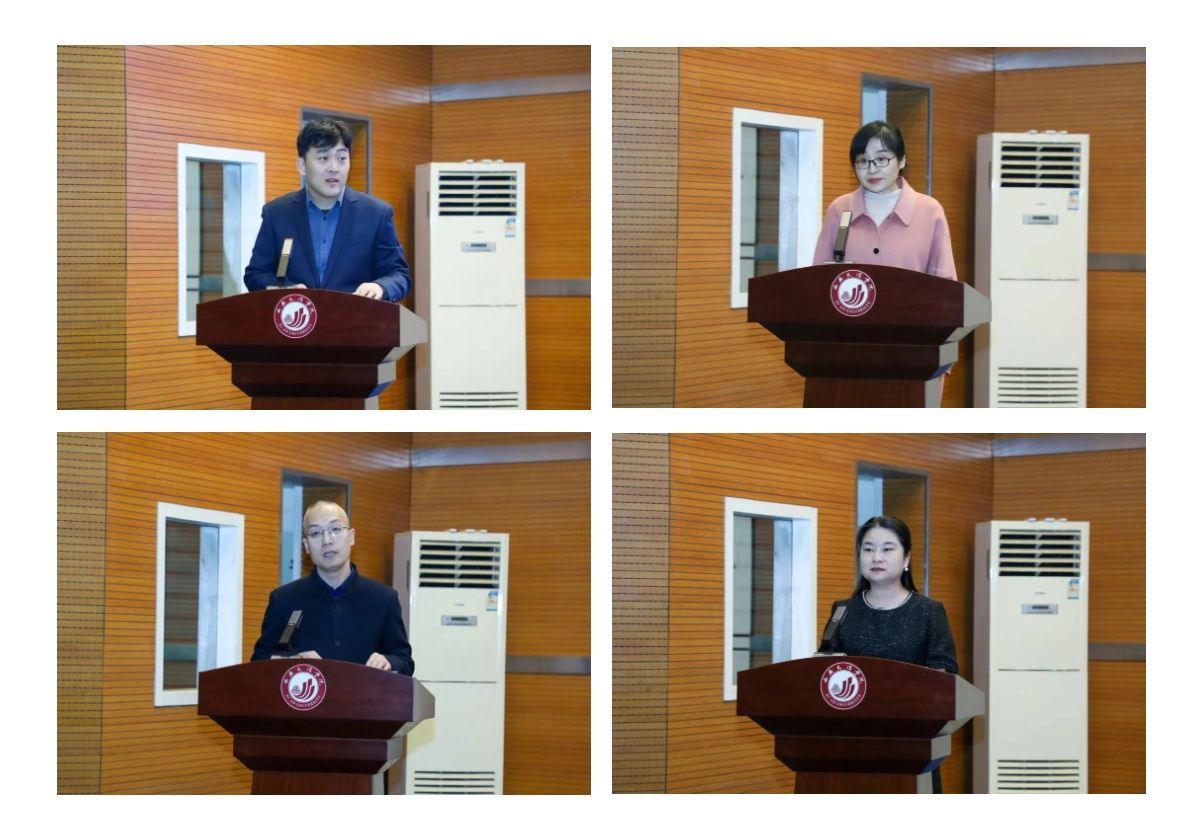 在申硕工作中做出重要贡献的职能部门、首批及第二批硕士学位建设点代表分别上台发言,分别从不同角度讲述了申硕历程中“上下联动、同题共答”的生动故事,充分展现了全体师生在申硕之路上“不忘初心、勇于担当、甘于奉献”的九游老哥J9俱乐部官网品格。