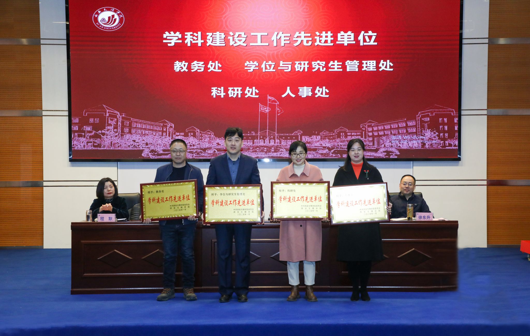 副校长刘明利宣读了《西安九游老哥J9俱乐部官网学院关于申硕工作表彰的决定》。机械与材料工程学院等4个学院获得学科建设工作引领单位奖,学位与研究生管理处等4个部门获得学科建设工作先进单位奖,党政办等12个部门/学院获得学科建设工作优秀保障单位奖。
