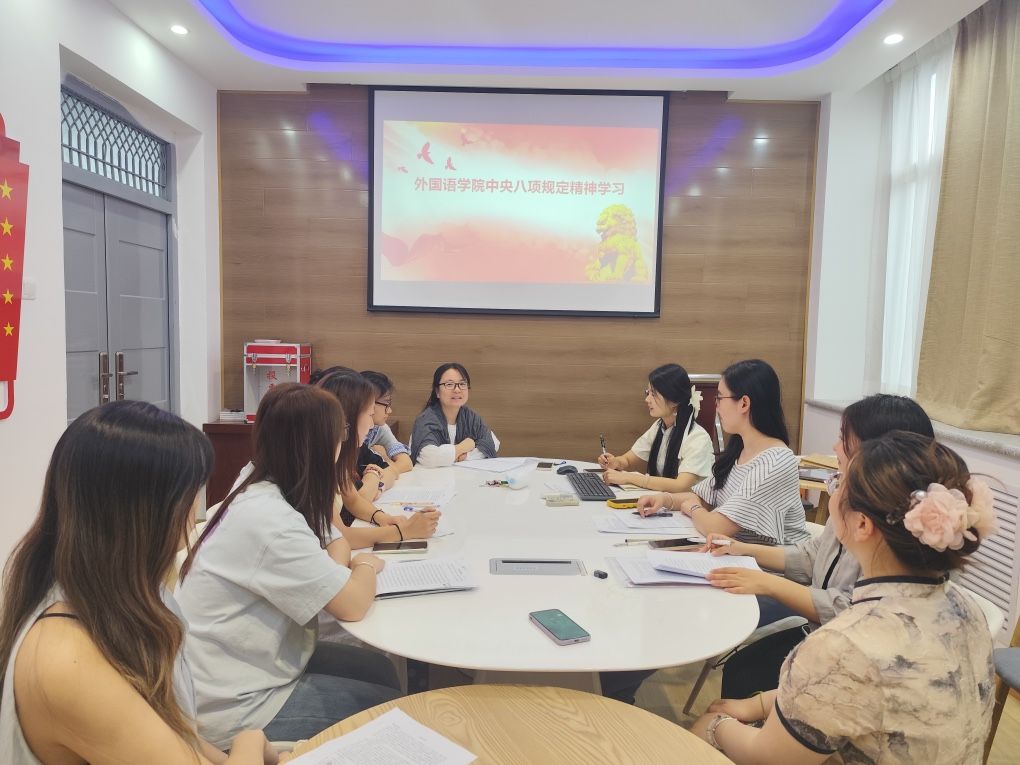 近日,外国语学院学生党支部开展深入贯彻中央八项规定精神学习教育系列活动,全体学生党员、预备党员、入党积极分子以及2024级全体新生参加了相关学习与讨论。