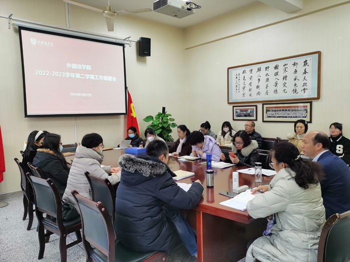2月17日上午,外国语学院召开新学期工作部署会。院长韩红建主持会议,学院领导班子、系部主任、支部书记、行政教辅人员参会。 副院长姚金红安排教学工作,要求全体教师以高度的责任心上好开学第一堂课,做好试卷归档...