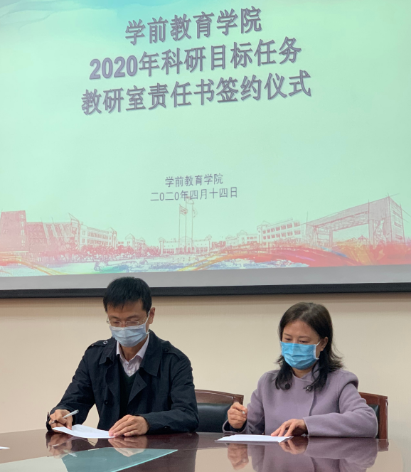 4月14日上午,学前教育学院在弘文楼H0208举行2020年科研目标任务教研室责任书签约会,学院领导班子全体成员和主任以上中层干部参加了活动。 学院经过充分研讨、论证,确定了分解思路,结合学院实际情况以教研室为单位...