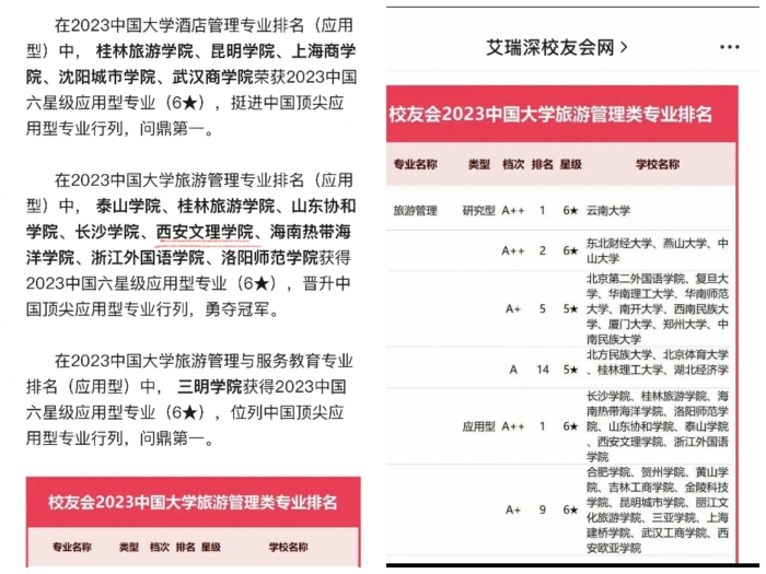 据全国知名第三方大学评价机构艾瑞深校友会网最近公布,我校历史文化旅游学院旅游管理专业,在“校友会2023年中国大学旅游管理类专业排名(应用型)”中,与泰山学院、桂林旅游学院等8所高校的旅游管理专业一起,获评...
