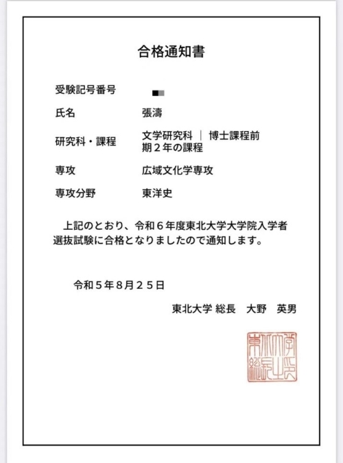 8月25日,我校外国语学院日语系2022届毕业生张涛成功考取日本东北大学研究生,攻读广域文化学专业。东北大学在2023QS世界大学排名第79位,日本国内第5位,也是鲁迅先生赴日留学的学校。 近年来,外国语学院日语系学生...