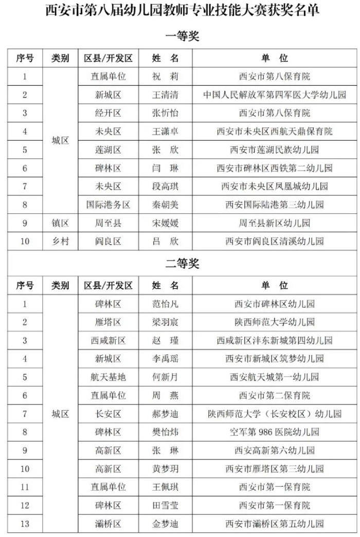 近日,西安市教育局公示了第八届幼儿园教师专业技能大赛比赛结果,学前教育专业2020届毕业生王潇卓、吕欣、闫琳,2019届毕业生张欣获一等奖,本次大赛一等奖共10人,4人为我校学前教育专业毕业生,占一等奖数量的40%...