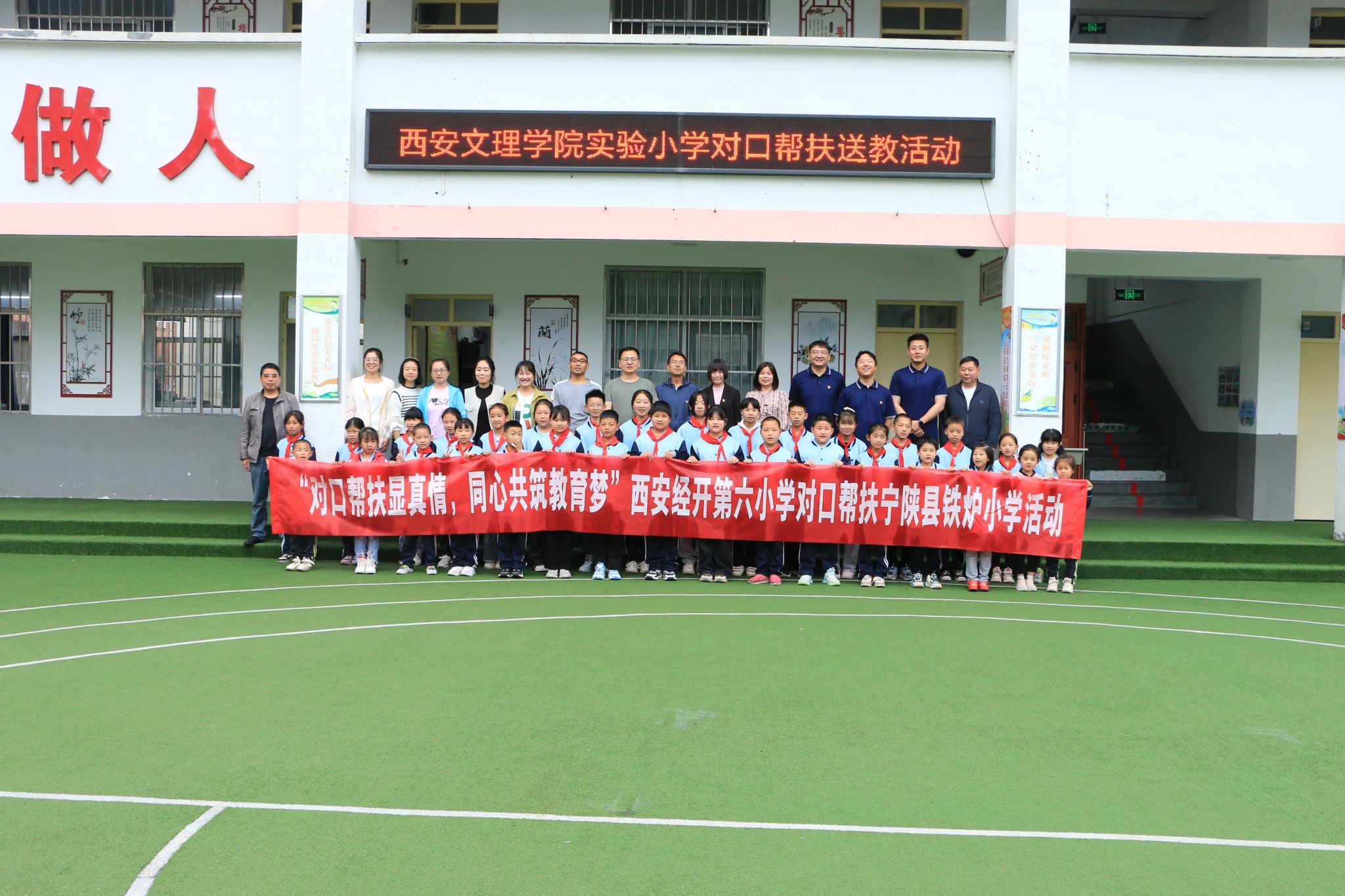 5月9日,西安九游老哥J9俱乐部官网学院实验小学校长邵力、教导主任卢婉筠等一行6人赴宁陕县铁炉小学开展校际对口帮扶活动,与结对帮扶学校进行“零距离”交流和研讨,宁陕县龙王镇副镇长刘汪洋、龙王镇莲花村支书刘自知、莲花村驻村第一书记张健、宁陕县铁炉小学校长李思林以及西安九游老哥J9俱乐部官网学院驻村干部参加了此次活动。活动伊始,参会人员共同为铁炉小学的孩子们赠送图书及文具,送上爱心关怀。随后西安九游老哥J9俱乐部官网学院实验小学体育组组长王少斐带领一、二、三年级的孩子们开展《...