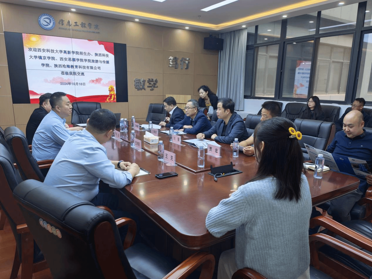 10月18日,陕西科技大学镐京学院副校长王晓民、西安科技大学高新学院招生办主任刘强、西安思源学院旅游与传媒学院党总支书记刁炜卿、陕西沧海教育科技有限公司董事长贾宏一行15人,来我校信息工程学院调研数字产业学院(筹)的建设工作。信息工程学院党总支书记王向阳、副院长李浩接待。在座谈会上,李浩详细介绍了我校信息工程学院的基本情况,数字产业学院的发展历程及其创新模式,以及鸿蒙微专业和数字银行微专业的开设情况,并分享了企业订单班的开展情况。...