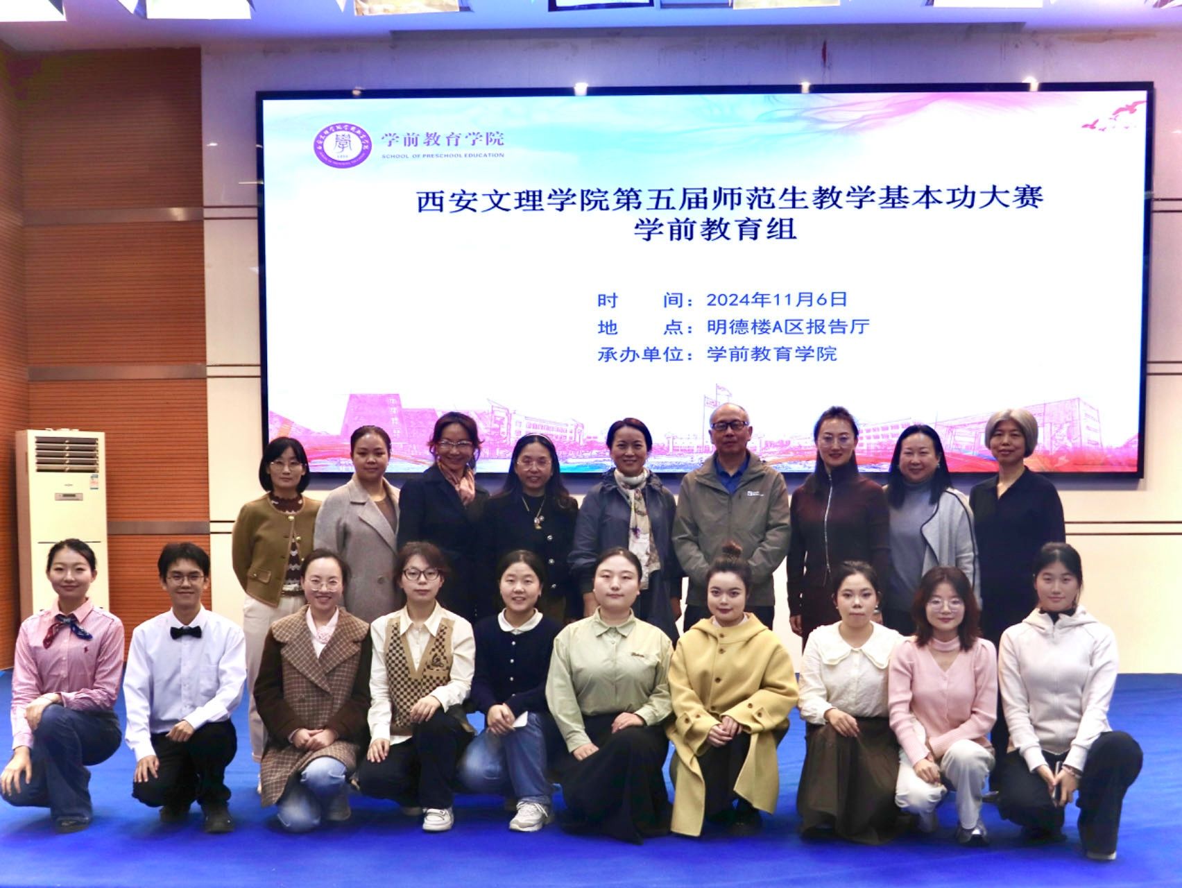 近日,学前教育学院举办我校第五届师范生教学基本功大赛(学前教育组)。本次大赛特邀西安市教育科学研究院教研员姜西润,西安航天城第三幼儿园园长白娜,我校前教育学院副教授李新舟、副教授李红雨、课程教学部教师师淑彦担任评委。学前教育学院党总支书记刘爱霞、党总支委员雷巧娟及学院专任教师代表出席本次活动。比赛分为A、B两组进行。A组项目包括儿童故事讲述、幼儿歌曲弹唱、幼儿舞蹈表演、幼儿简笔画及粉笔字书写四项。B组项目包括教学活动设计与课件制作、...