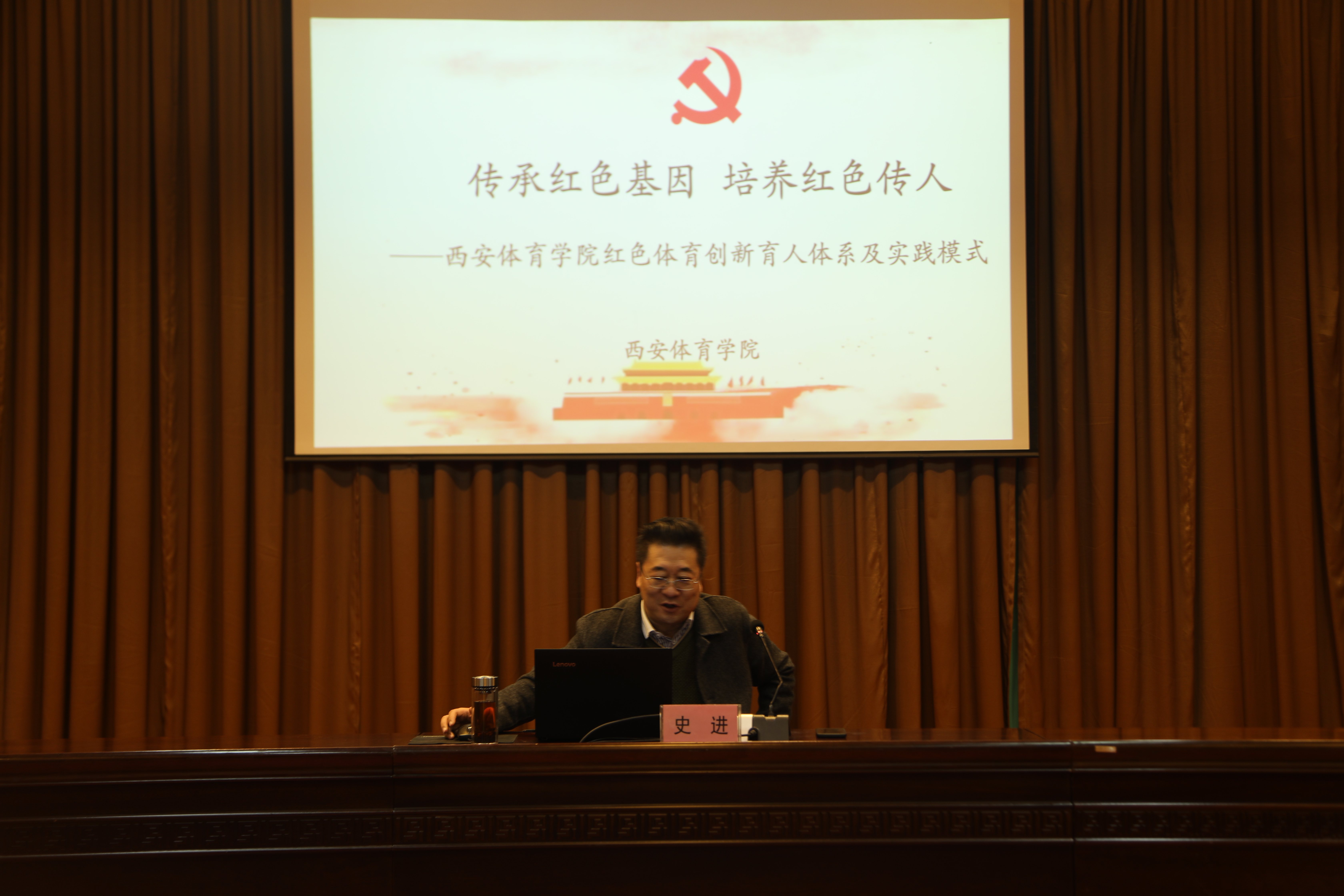11月19日下午,西安体育学院史进教授在我校A区报告厅为体育学院全体师生作了以“传承红色体育精神 培育新时代接班人”为主题的精彩讲座。体育学院院长查毅,党总支书记马修海,党总支副书记徐佳,科研副院长费薇娜及...